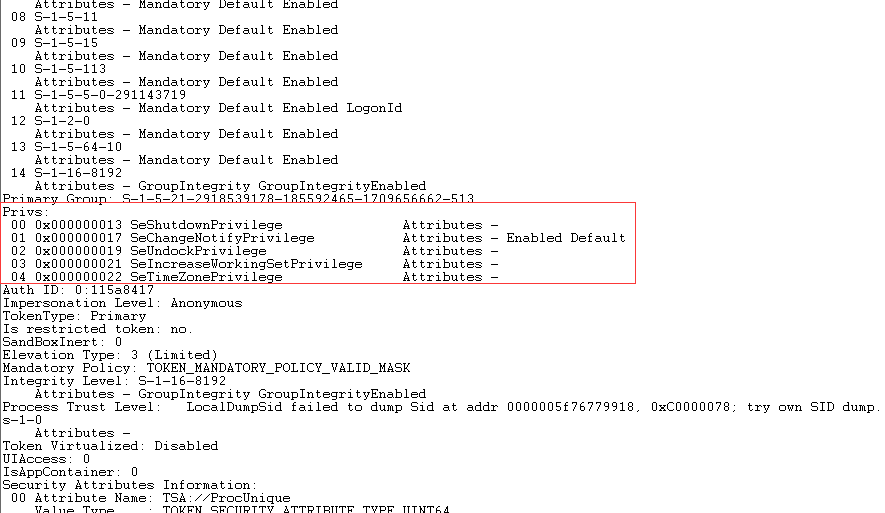 访问令牌中存在用户及所属组的特权信息: